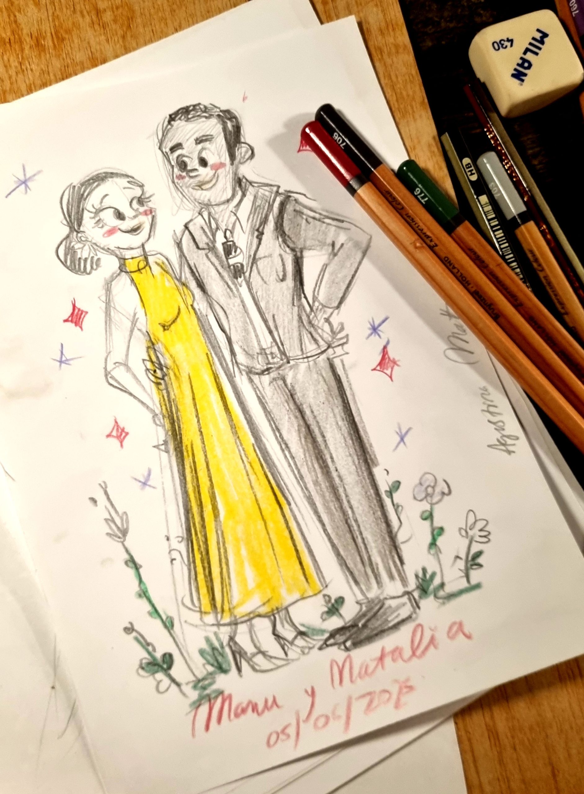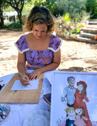 ¡No os preocupéis! También ofrezco un servicio post-evento para retratar a quienes no llegaron a pasar por la mesa. Vosotros me mandáis sus fotos después del evento y yo me encargo de pintar sus retratos a mano con el mismo estilo.